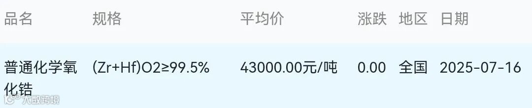2025年07月16日氧化锆材料市场参考价: