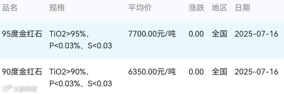 2025年07月16日金红石材料市场参考价: