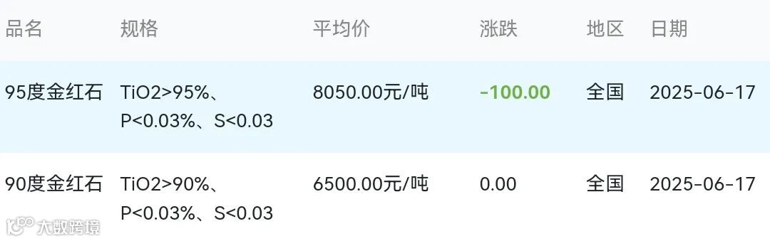 2025年06月17日金红石材料市场参考价: