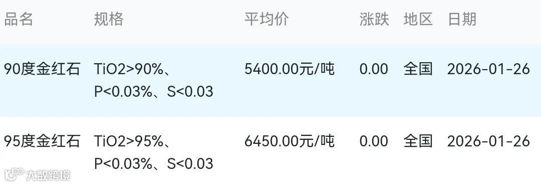 2026年01月26日金红石材料市场参考价: