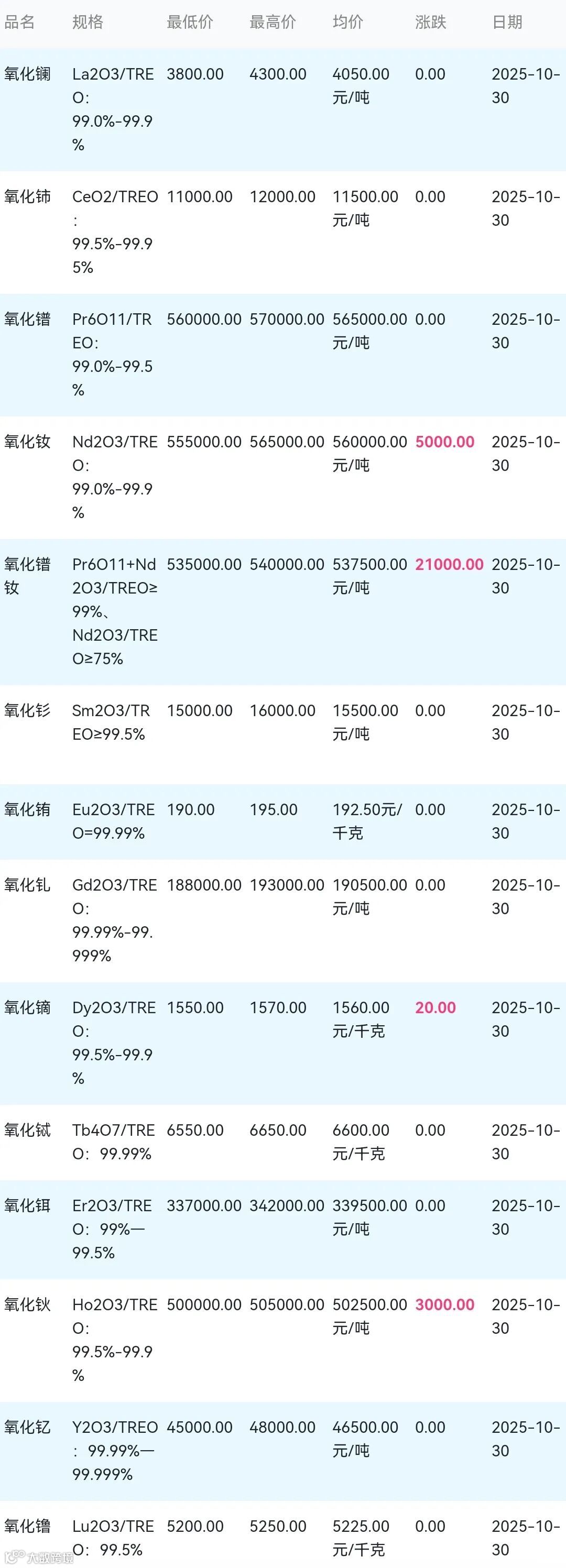 2025年10月30日稀土氧化物材料市场参考价: