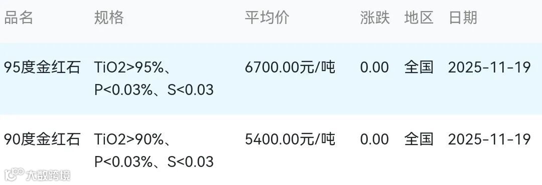 2025年11月19日金红石材料市场参考价:
