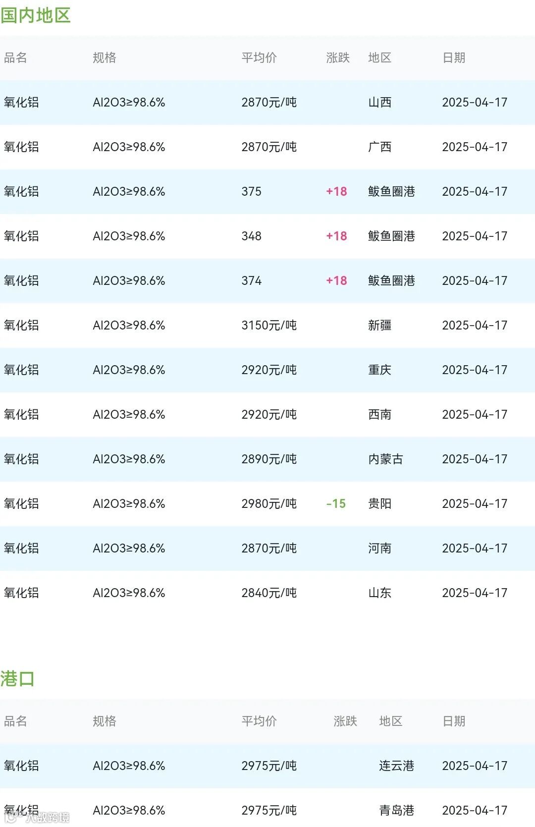 2025年04月17日氧化铝粉体材料市场参考价:
