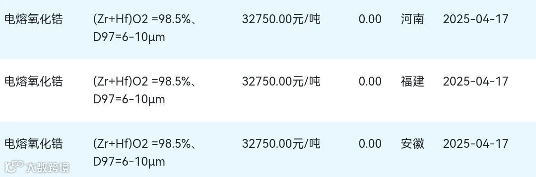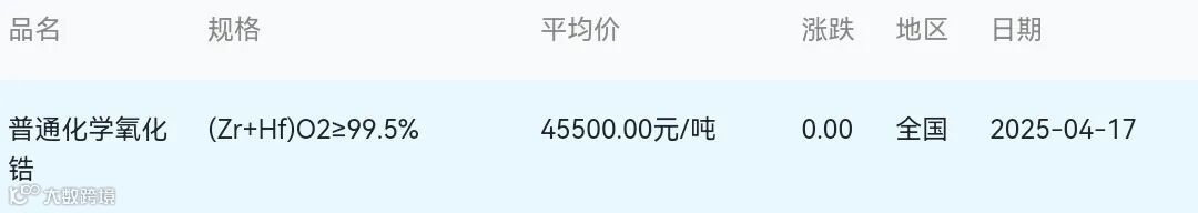 2025年04月17日氧化锆材料市场参考价: