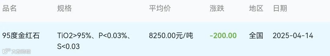 2025年04月14日金红石材料市场参考价: