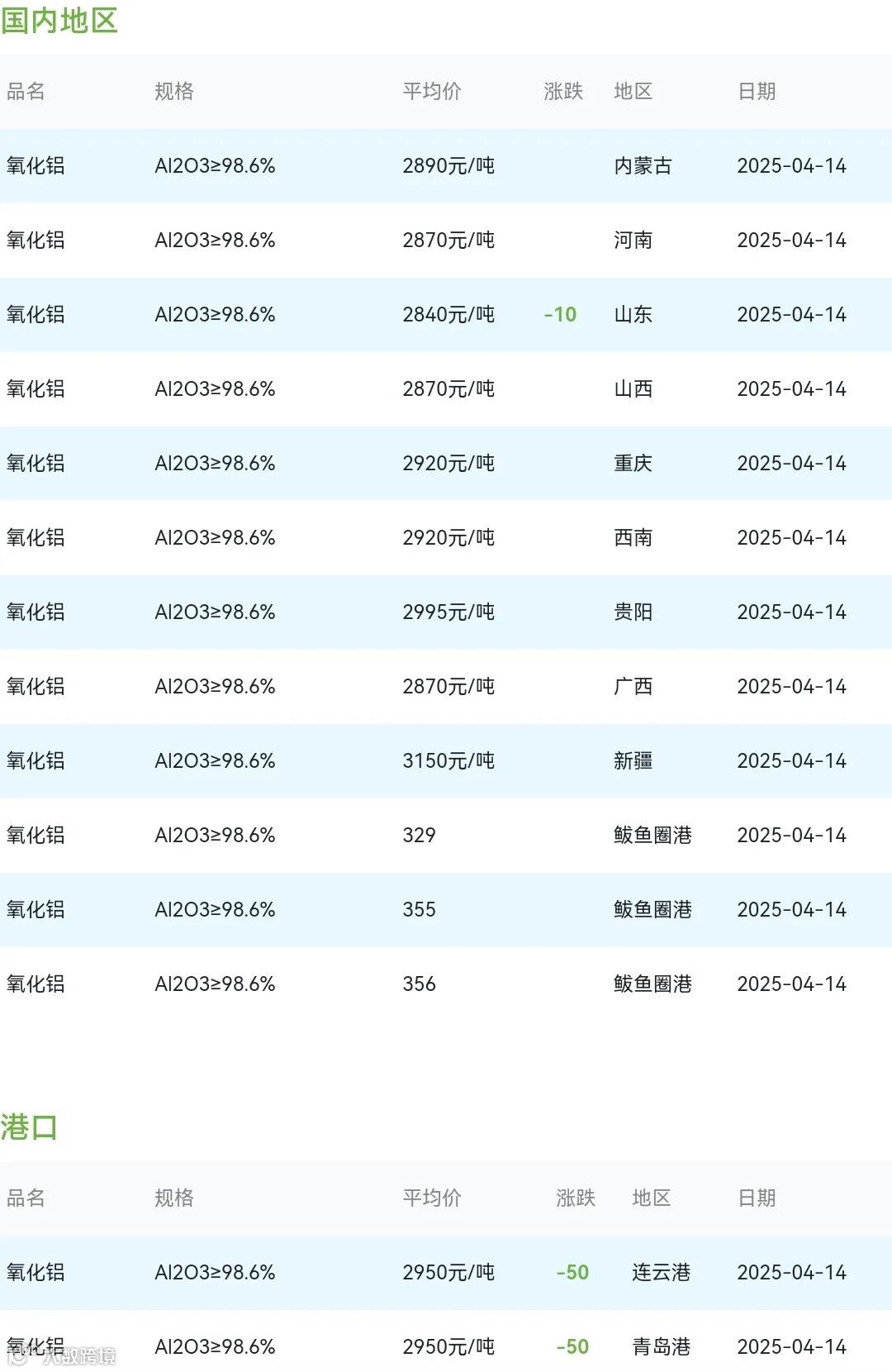 2025年04月14日氧化铝粉体材料市场参考价: