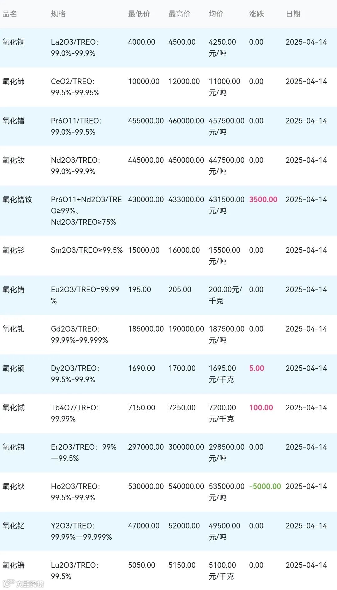 2025年04月14日稀土氧化物材料市场参考价: