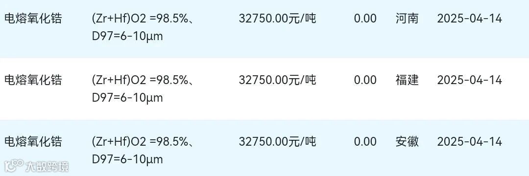 2025年04月14日氧化锆材料市场参考价: