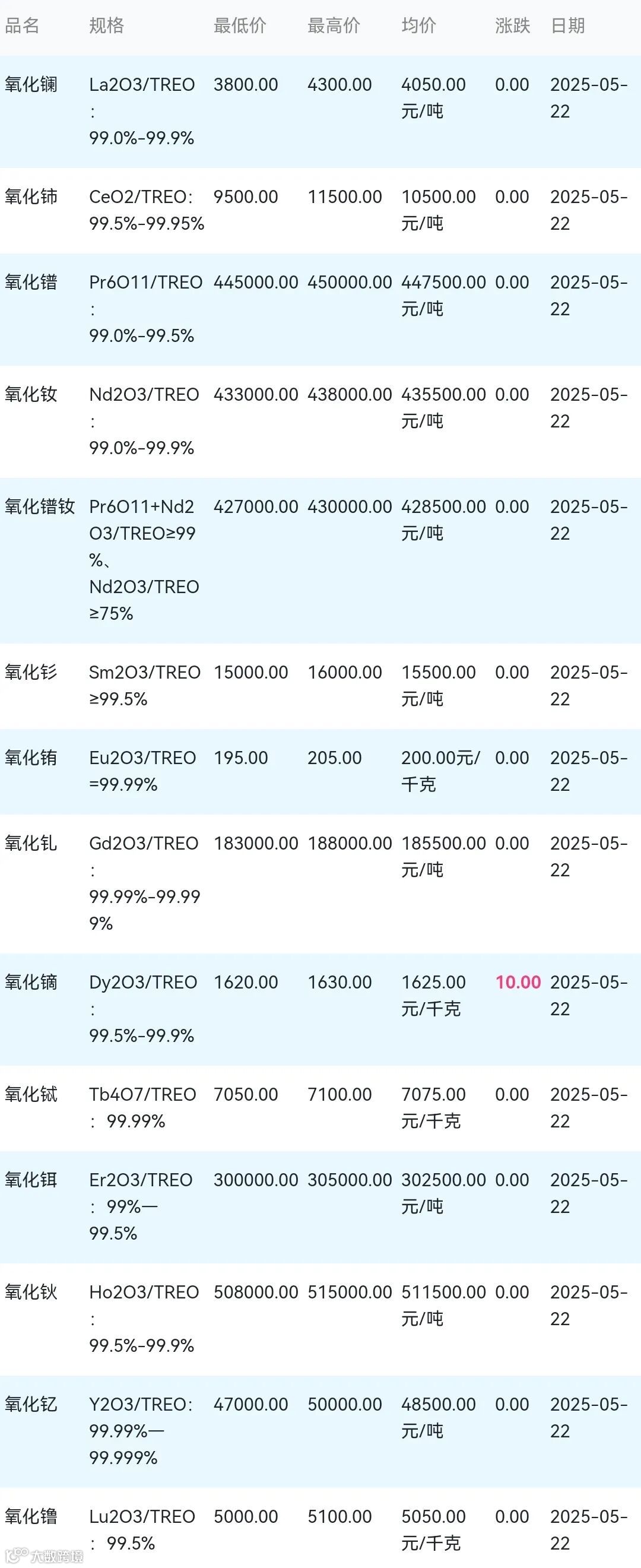 2025年05月22日稀土氧化物材料市场参考价: