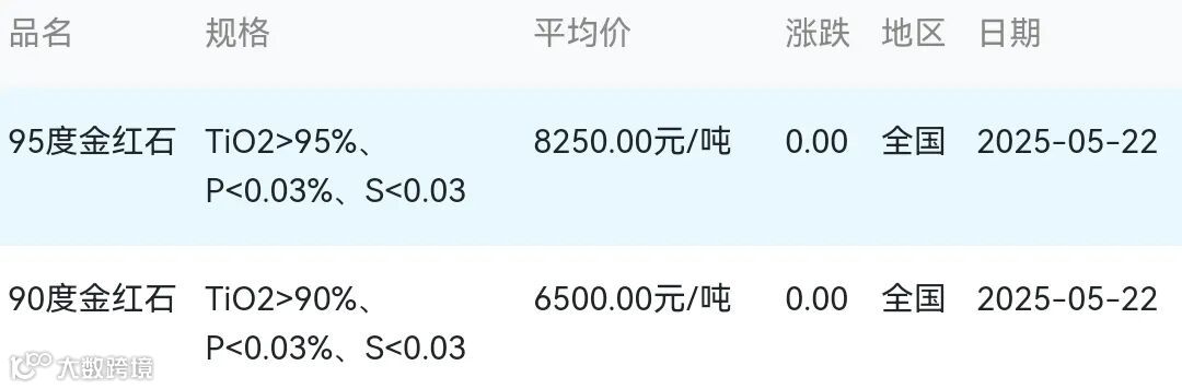 2025年05月22日金红石材料市场参考价: