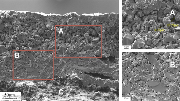 ▲气相渗硅形成的多孔SiC壳层
