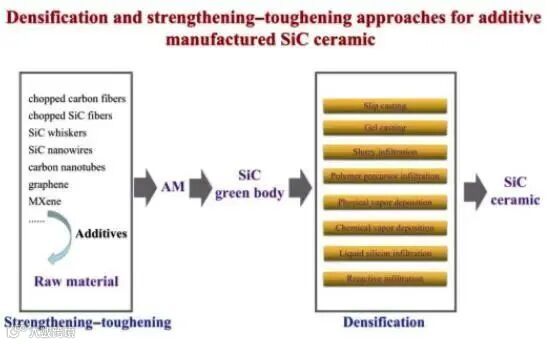 ▲增材制造SiC陶瓷材料致密化与强韧化途径