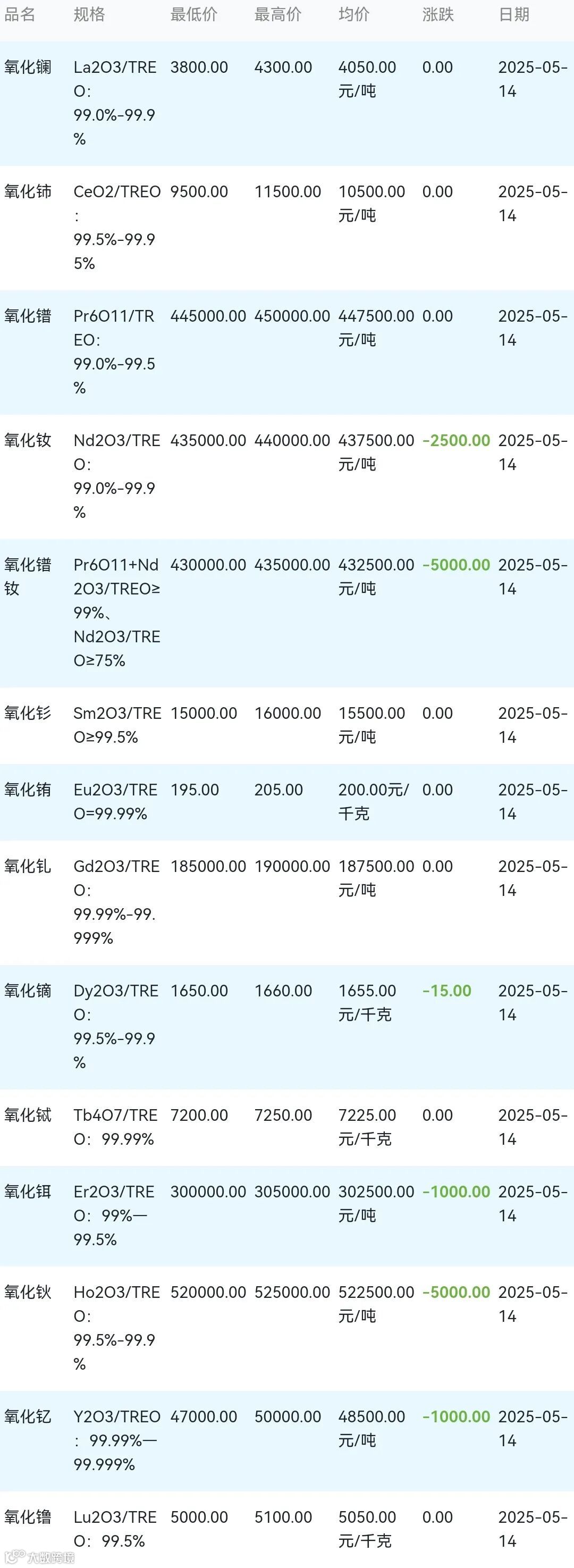 2025年05月14日稀土氧化物材料市场参考价: