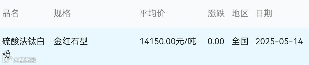 2025年05月14日钛白粉材料市场参考价: