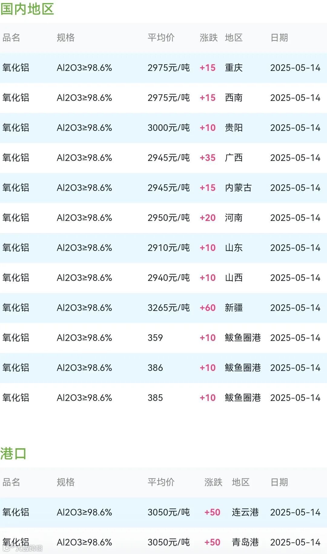 2025年05月14日氧化铝粉体材料市场参考价:
