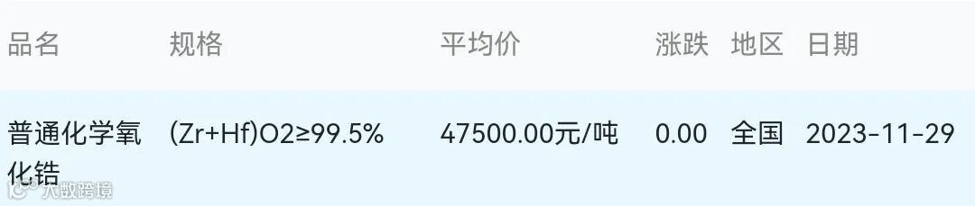 2023年11月29日氧化锆材料市场参考价: