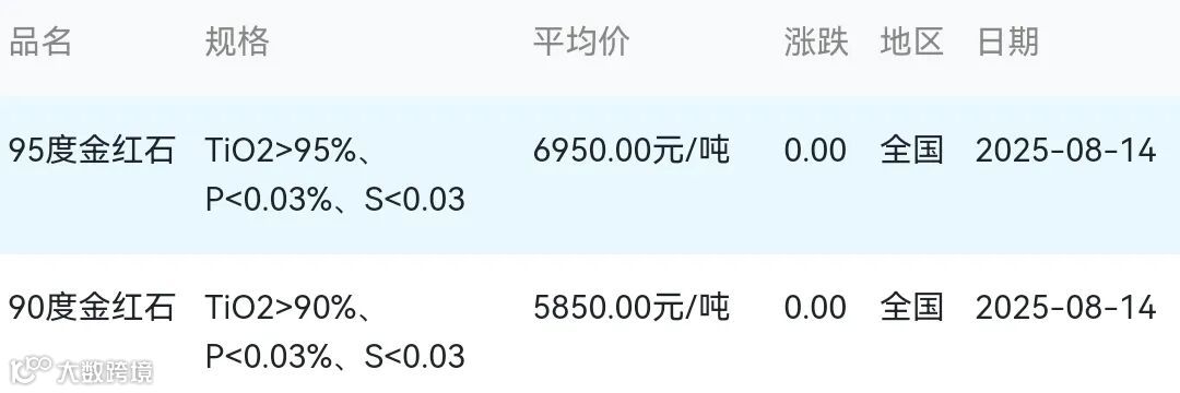 2025年08月14日金红石材料市场参考价: