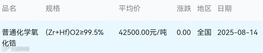 2025年08月14日氧化锆材料市场参考价: