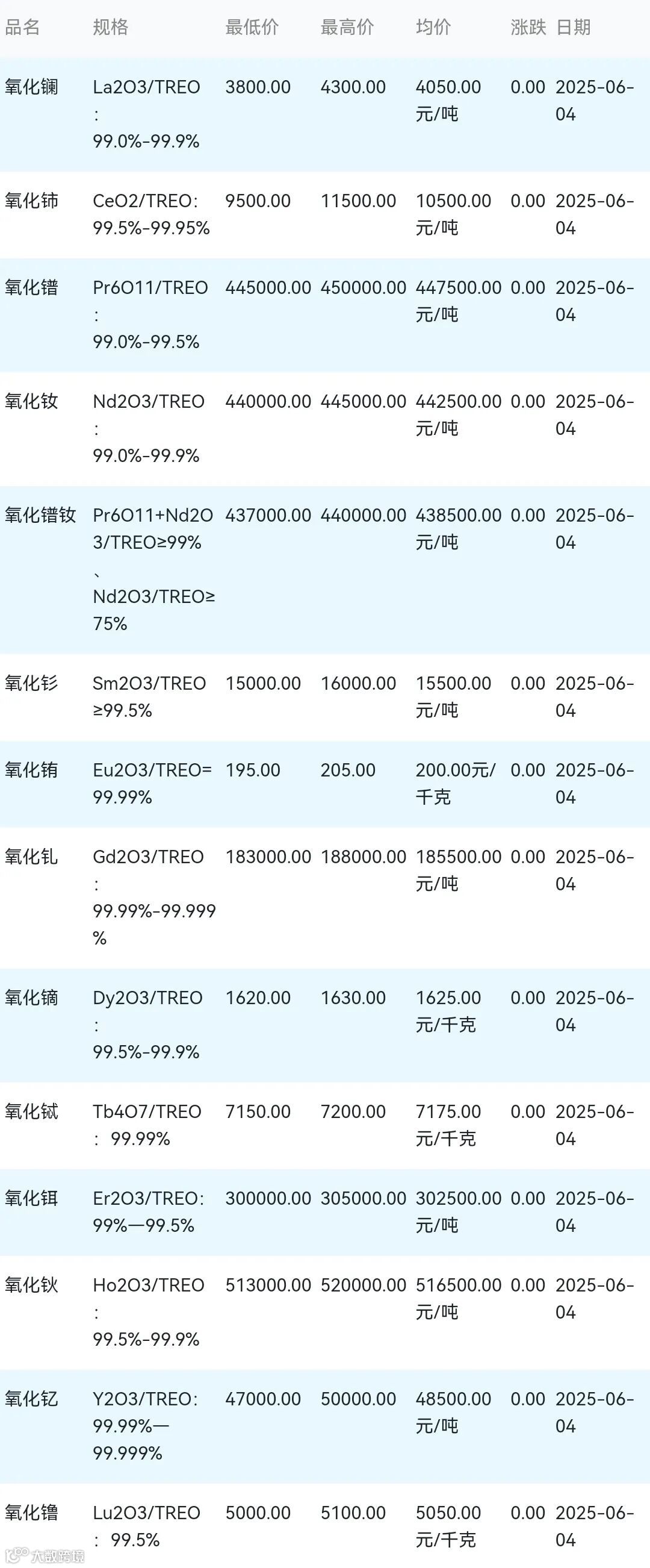 2025年06月04日稀土氧化物材料市场参考价: