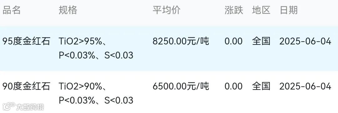 2025年06月04日金红石材料市场参考价:
