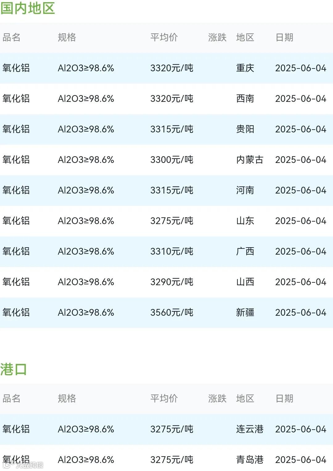 2025年06月04日氧化铝粉体材料市场参考价: