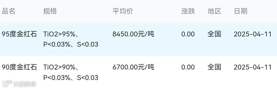 2025年04月11日金红石材料市场参考价: