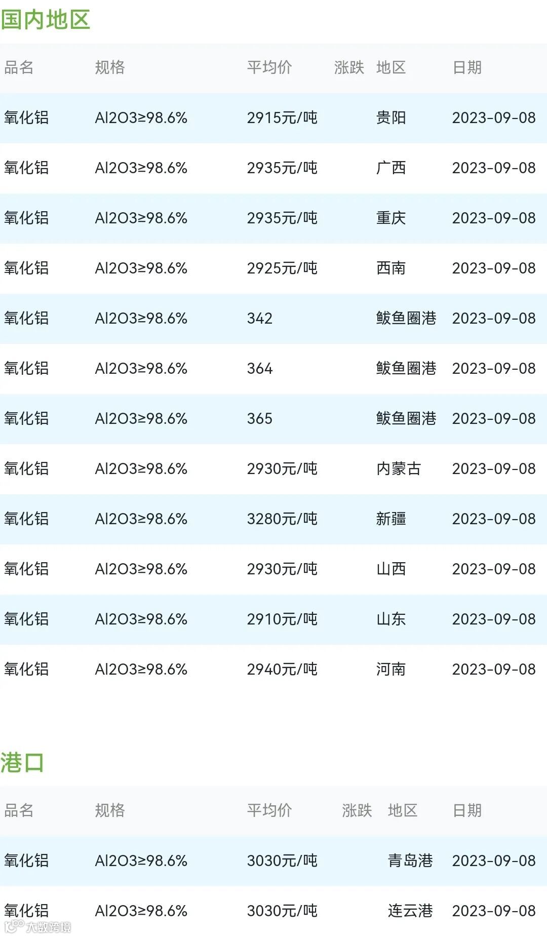 2023年09月08日氧化铝粉体材料市场参考价: