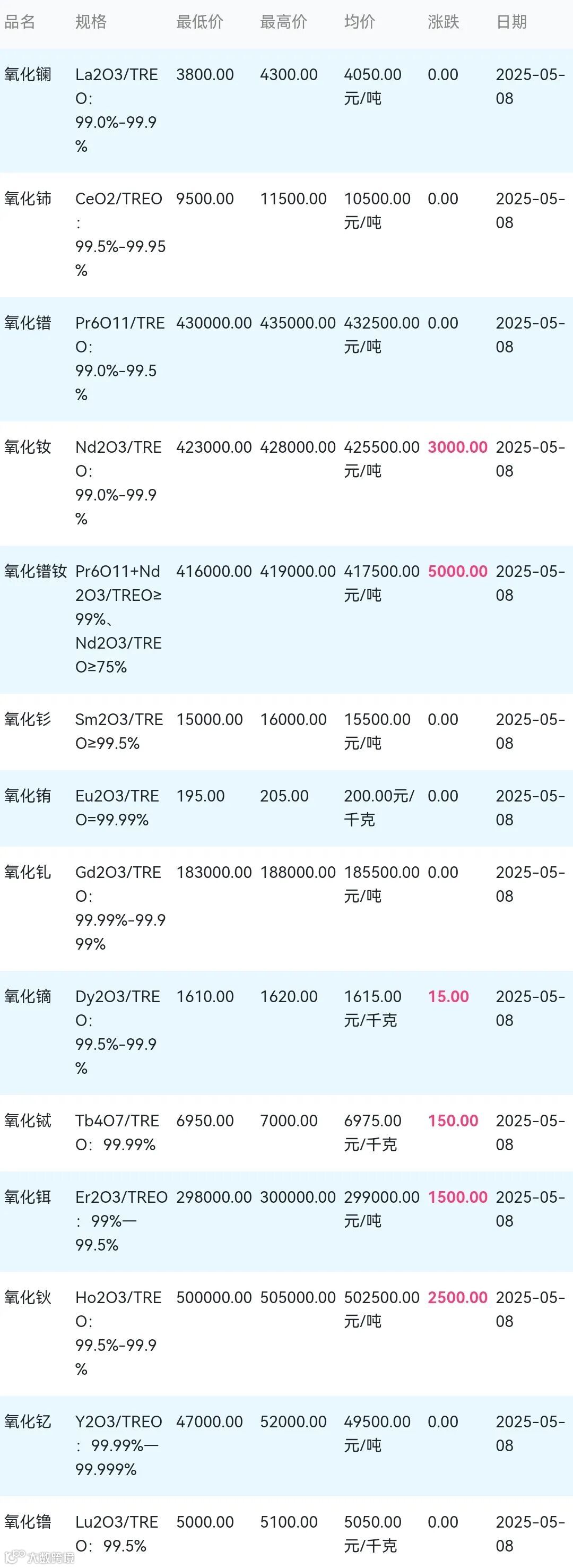 2025年05月08日稀土氧化物材料市场参考价: