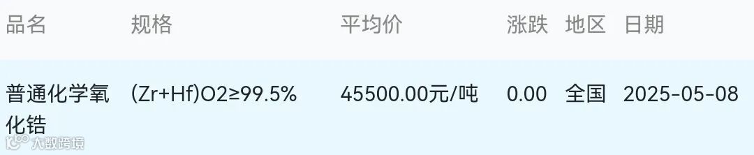 2025年05月08日氧化锆材料市场参考价: