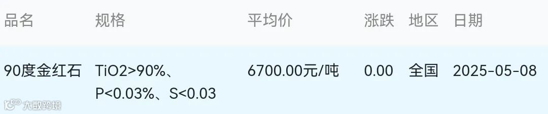 2025年05月08日金红石材料市场参考价: