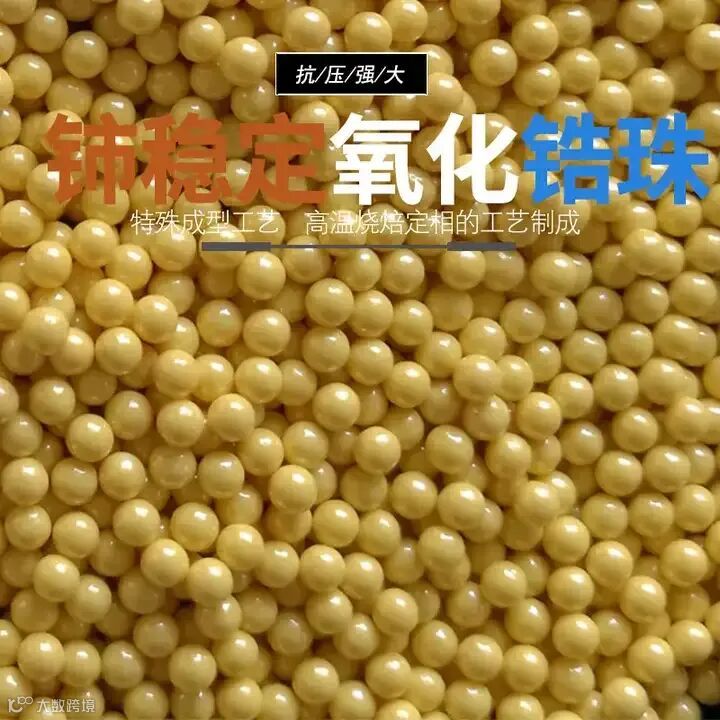 ②铈锆珠:全称铈稳定氧化锆珠,氧化锆含量为80%,氧化铈占20%。这种锆珠有黄色、咖啡色和黑色的不同种类。