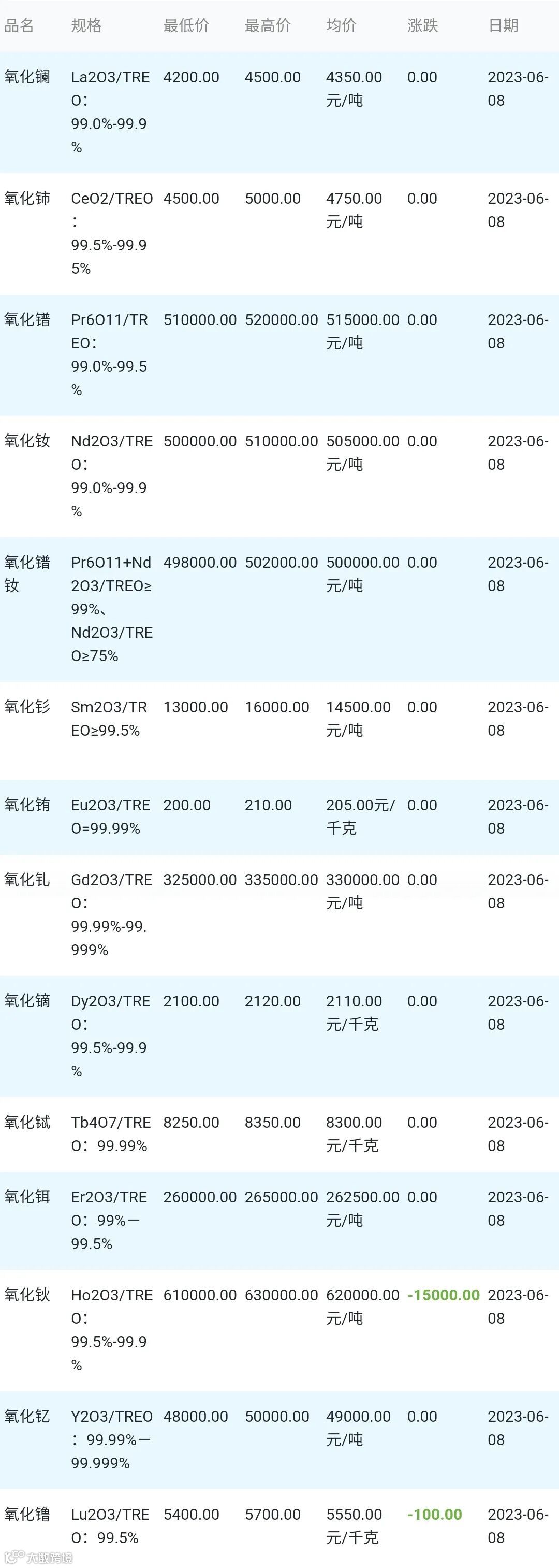 2023年06月08日稀土氧化物材料市场参考价: