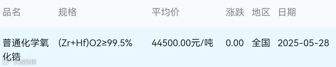 2025年05月28日氧化锆材料市场参考价: