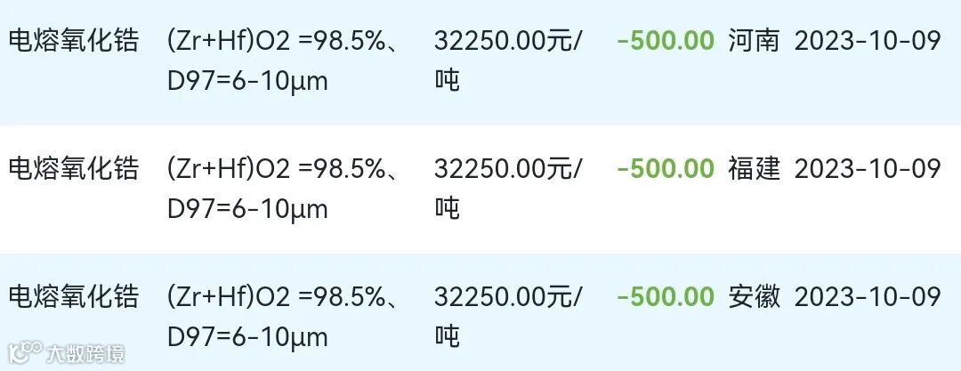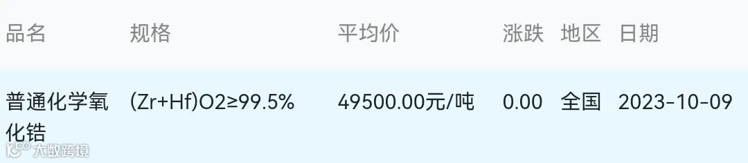 2023年10月09日氧化锆材料市场参考价: