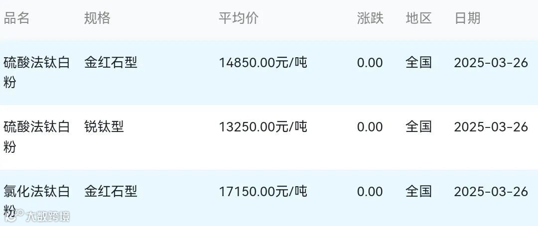 2025年03月26日钛白粉材料市场参考价: