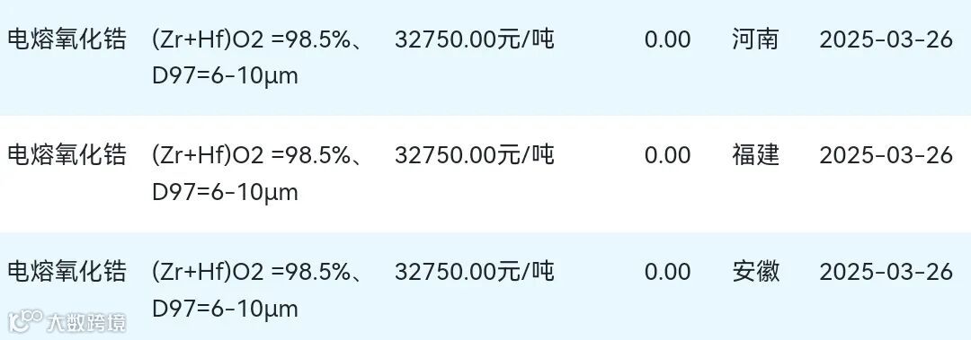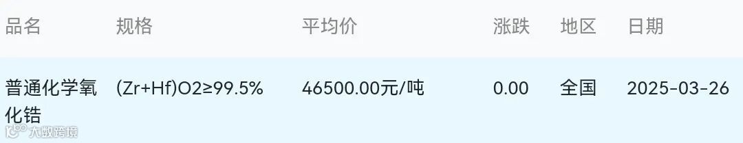 2025年03月26日氧化锆材料市场参考价: