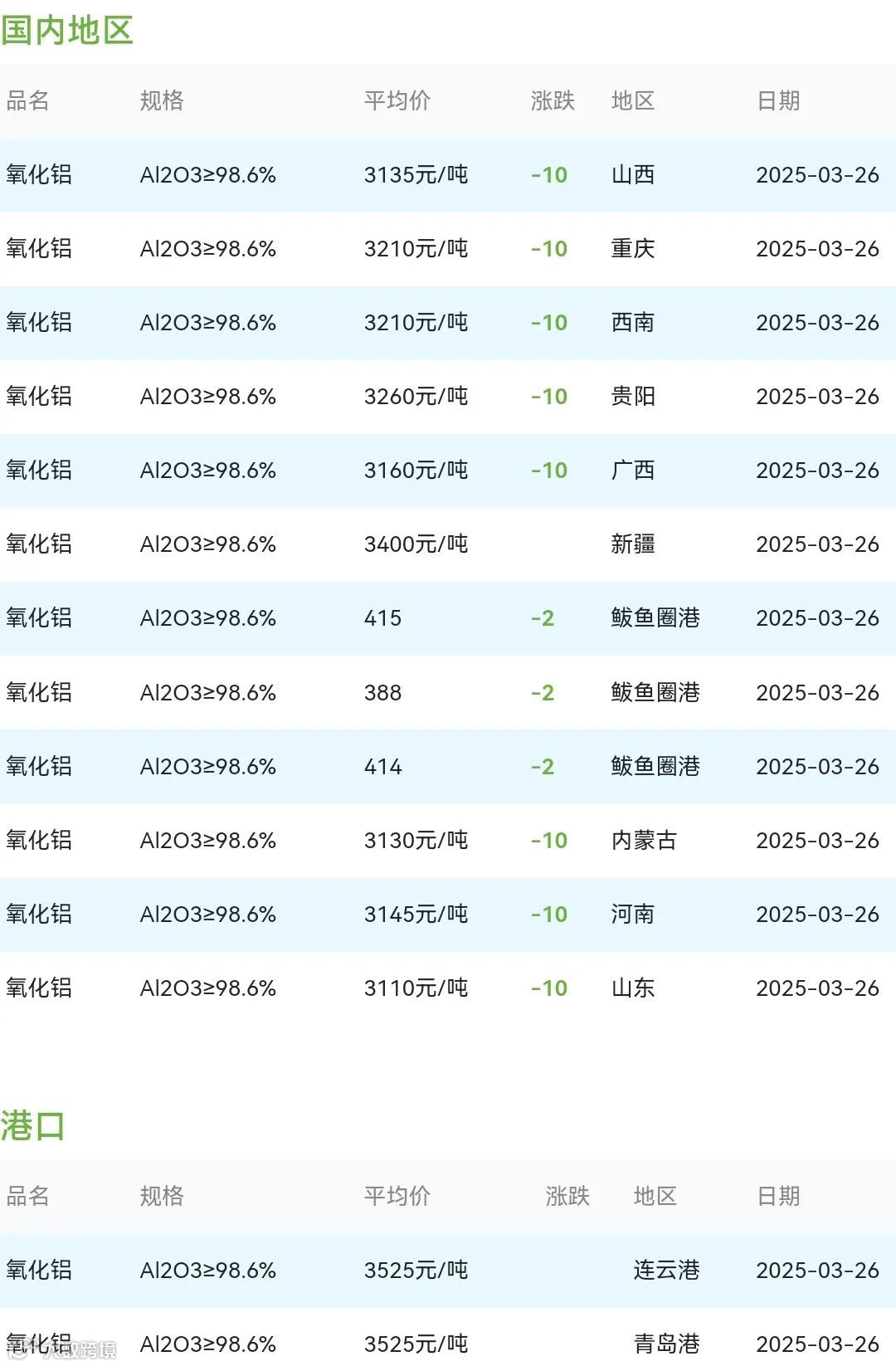 2025年03月26日氧化铝粉体材料市场参考价: