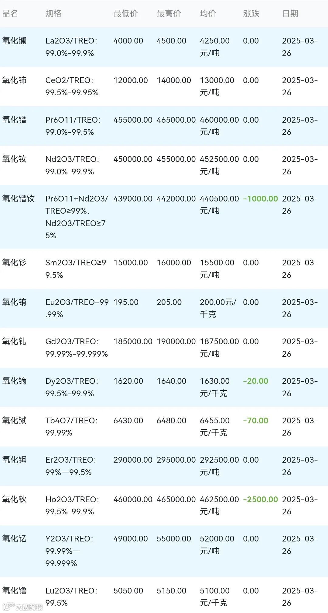 2025年03月26日稀土氧化物材料市场参考价: