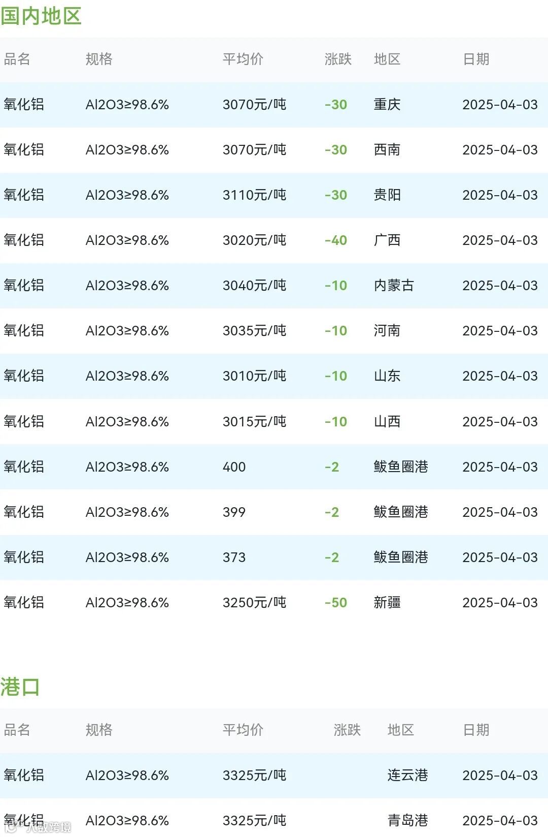 2025年04月03日氧化铝粉体材料市场参考价: