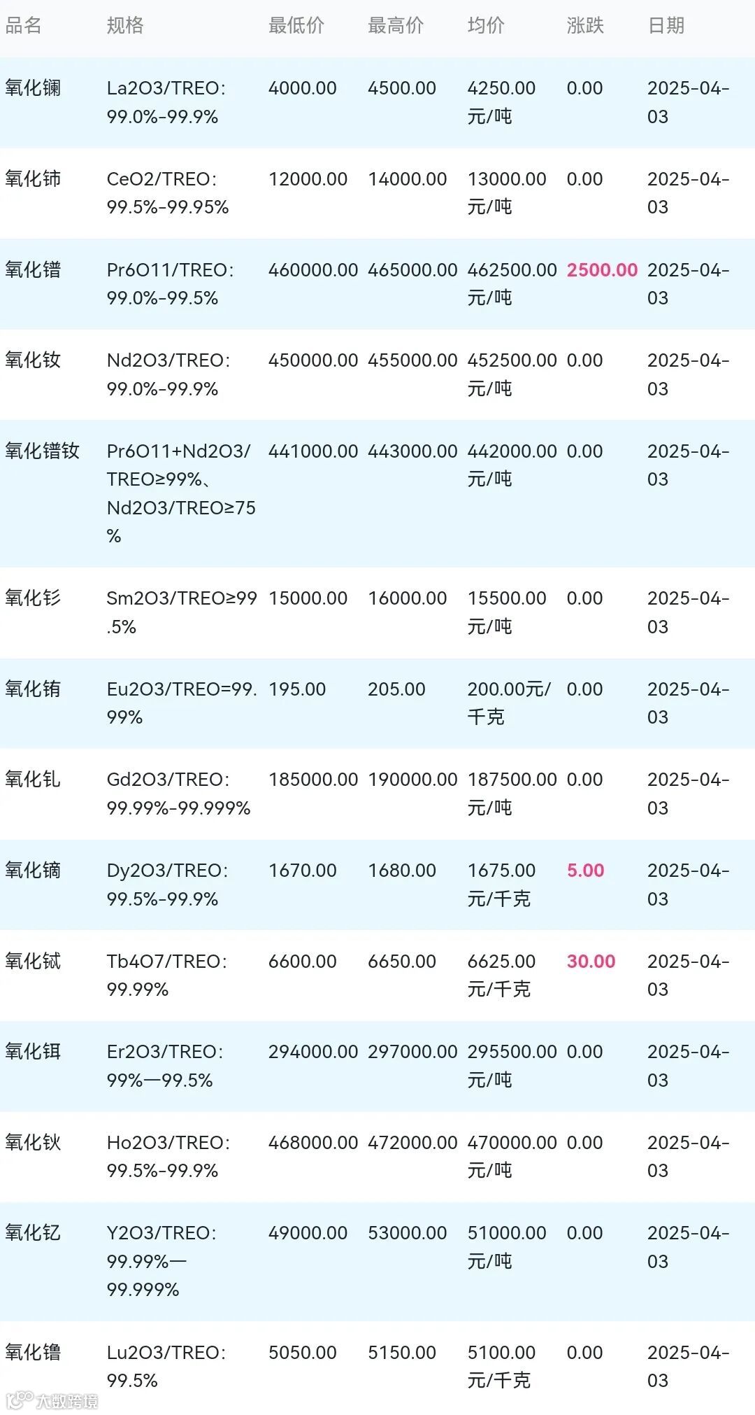 2025年04月03日稀土氧化物材料市场参考价: