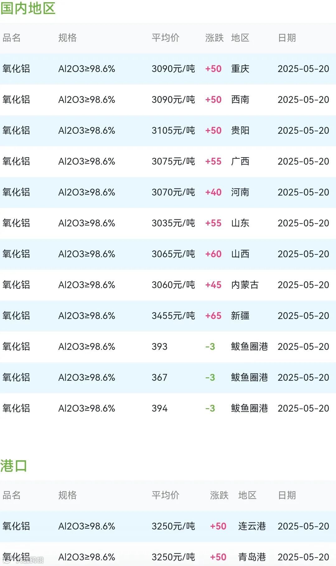 2025年05月20日氧化铝粉体材料市场参考价: