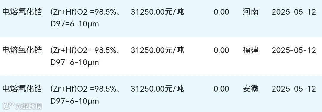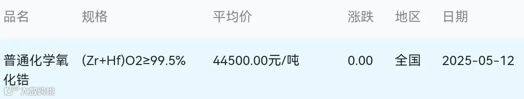 2025年05月12日氧化锆材料市场参考价:
