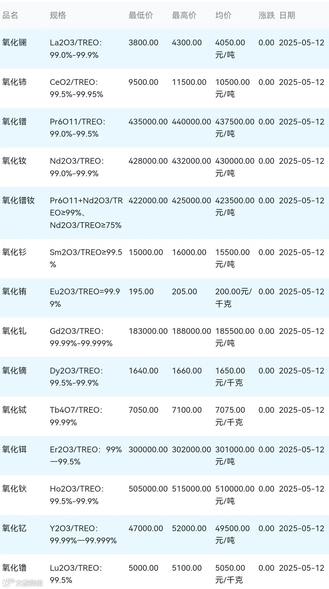 2025年05月12日稀土氧化物材料市场参考价: