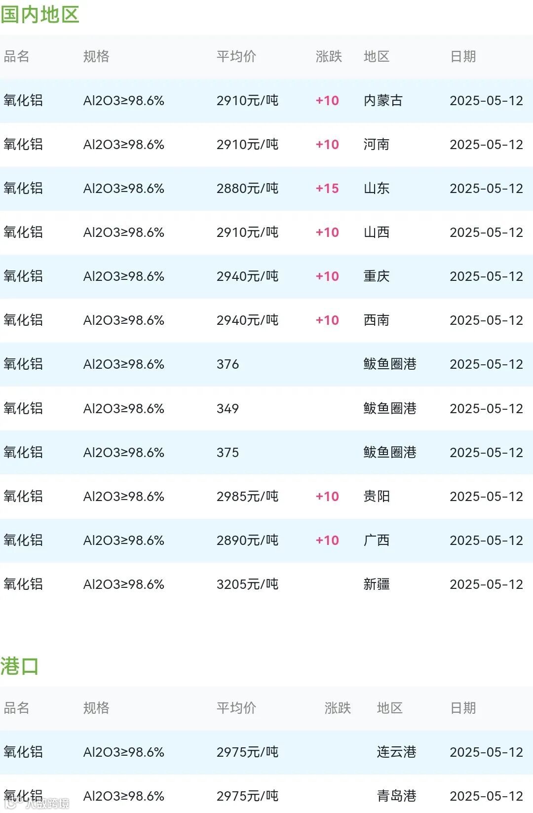 2025年05月12日氧化铝粉体材料市场参考价:
