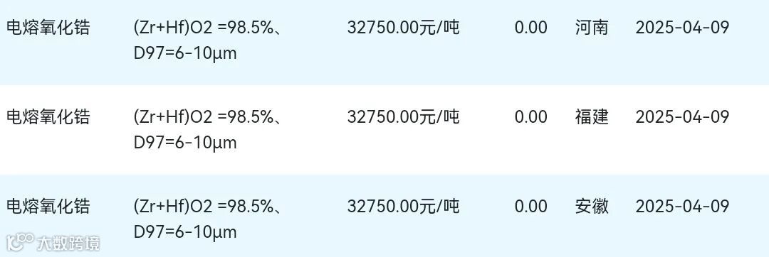 2025年04月09日氧化锆材料市场参考价: