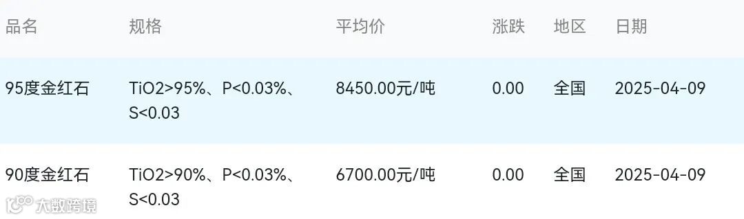 2025年04月09日金红石材料市场参考价: