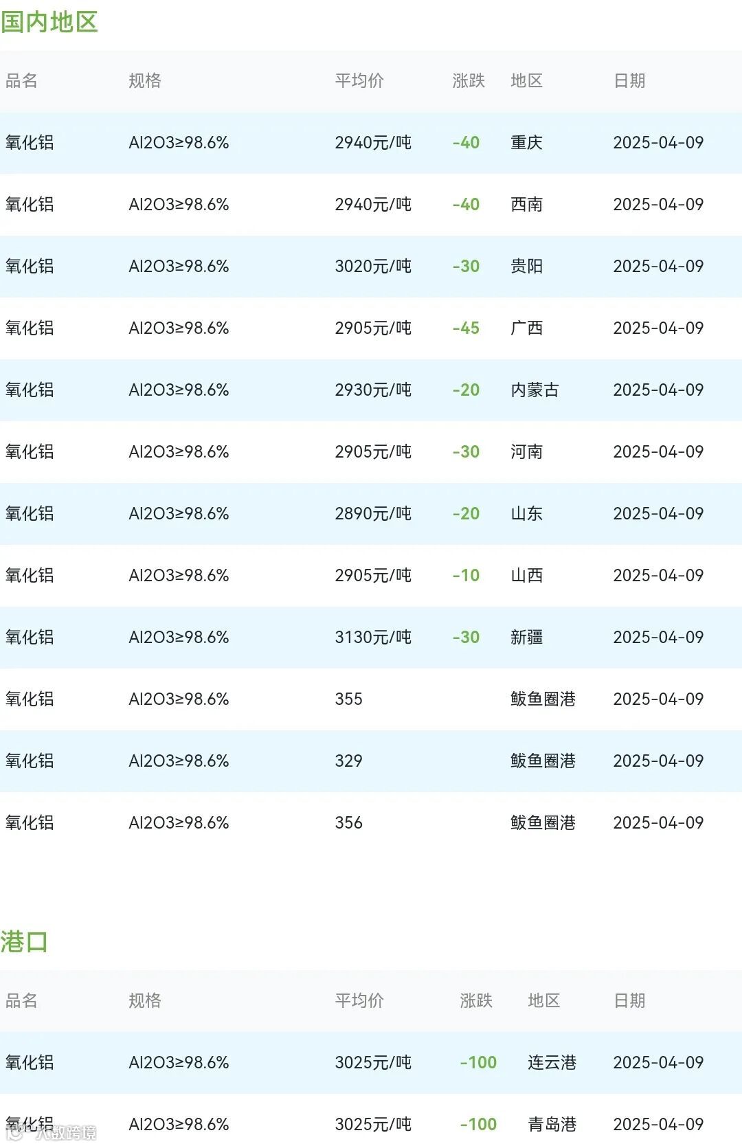 2025年04月09日氧化铝粉体材料市场参考价: