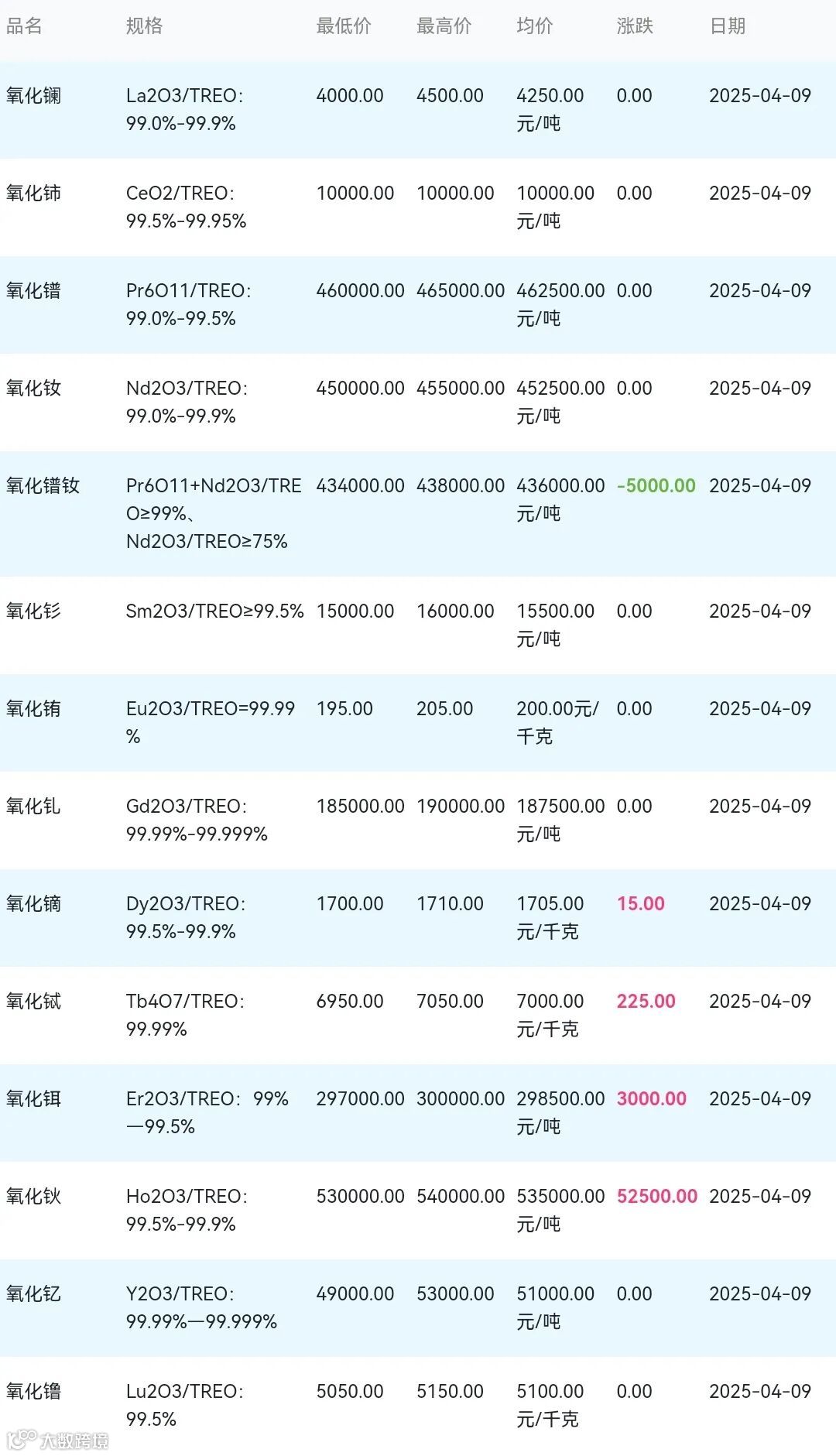 2025年04月09日稀土氧化物材料市场参考价: