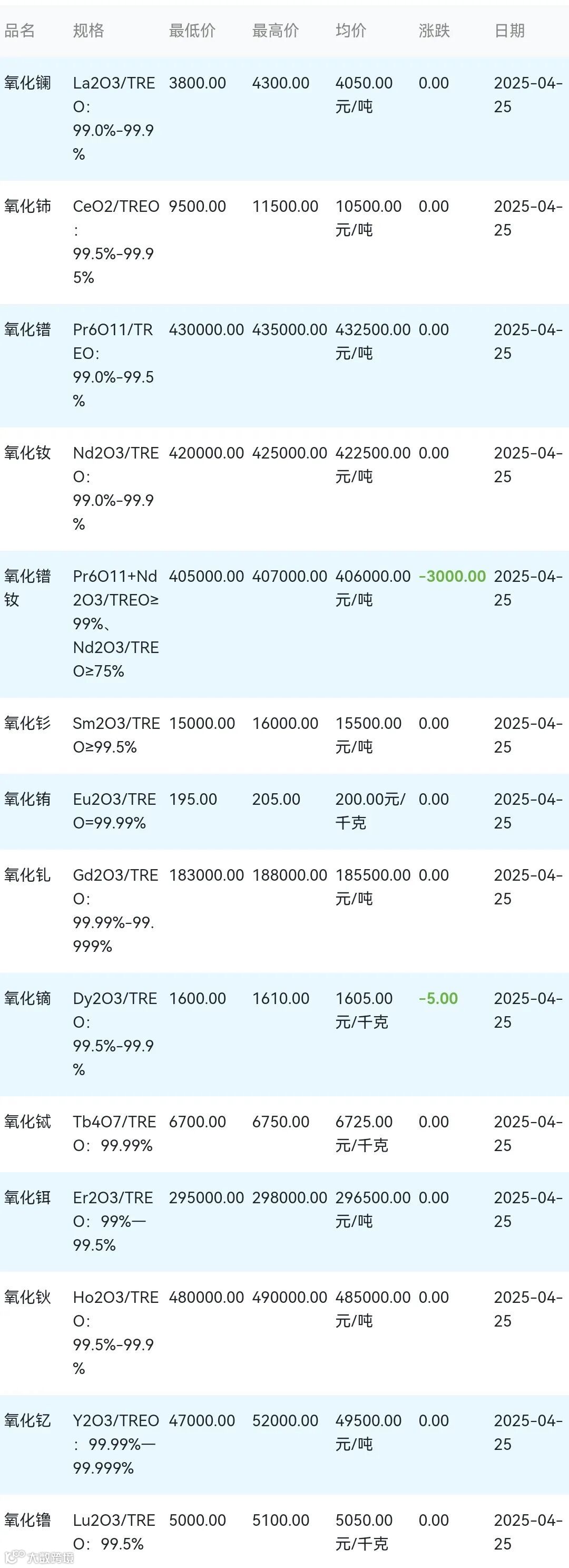 2025年04月25日稀土氧化物材料市场参考价: