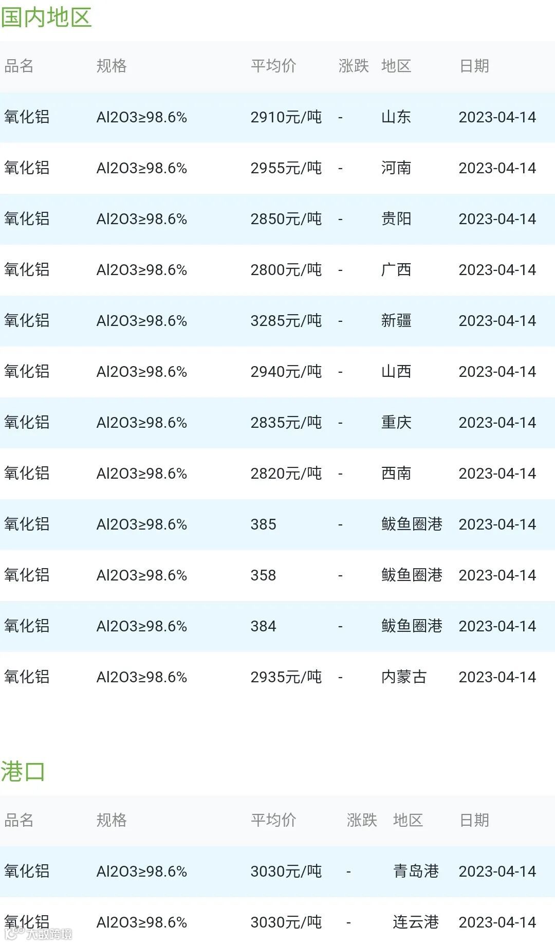 2023年04月14日氧化铝粉体材料市场参考价: